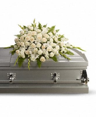 Our Silken Serenity Casket Spray is a stunning floral arrangement that can assist you in expressing your affection and remembrance for someone who has passed away. This beautiful bouquet includes exquisite creme roses, carnations, white gladioli, and ferns, among other flowers.