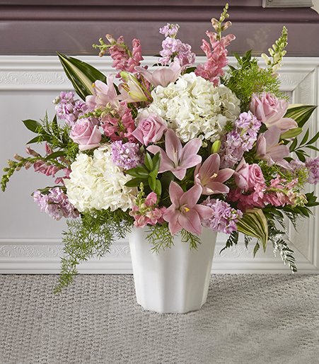 Losing a loved one is a sensitive and challenging experience, and finding the right words to express your condolences can be a daunting task. This is why we've introduced the Simply Serene Floor Basket, an exquisite arrangement of hydrangeas, lilies, and roses that conveys your sympathies in a genuine and heartfelt manner.